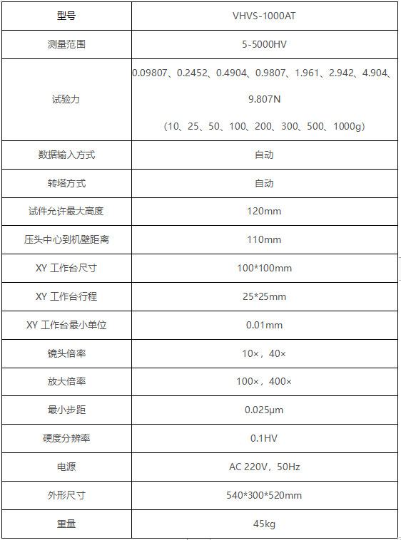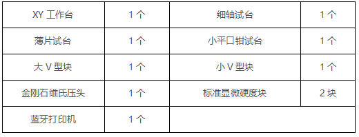 应用范围 1、 黑色金属、有色金属、IC薄片,表面涂层、层压金属;2、 玻璃、陶瓷、玛瑙、宝石、薄塑料等; 3、 碳化层和淬火层的深度及梯度的硬度测试。 4、适用于平行平面和微小零件及超薄零件的精密显微维氏硬度测量。 技术参数 ![]() 附件标准配置