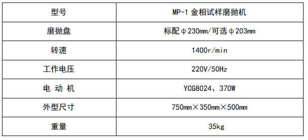 产品介绍 磨抛机的用途与特性 本磨抛机适用于对金相试样进行预磨、研磨和抛光操作。是用户用来制作金相试样必不可少的设备。本机带有冷却装置,可以在预磨时对试样进行冷却,以防止因试样过热而破坏金相组织。使用方便、稳定可靠。主要技术参数